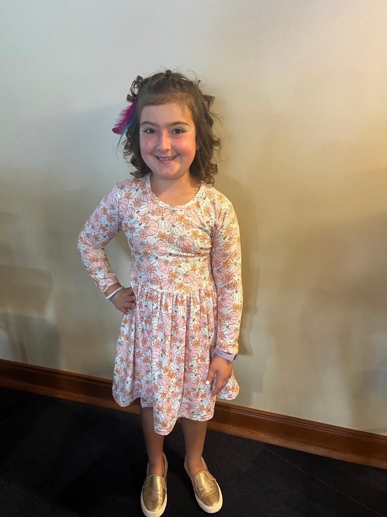 Ali is a young girl who loves swimming, dancing, crafts, American Girl Dolls, riding her bike, and playing with her sister. She was diagnosed with acute lymphocytic leukemia, or ALL, on July 27, 2020 – a few months into the pandemic. Her mother Susan said that Ali had low energy, a few fevers, and was green in the face for about a week and a half before they took her to the ER. At first, the doctors thought she had Multi-system inflammatory syndrome in children, or MIS-C, from Covid. After a bone marrow aspiration a few days later, they found out that she has leukemia. Ali spent 18 nights in the hospital at the time of her diagnosis and has spent a total of 35 nights in the hospital over the last few years. The “frontline” and more difficult part of her treatment lasted through June 2021, when she began maintenance.
